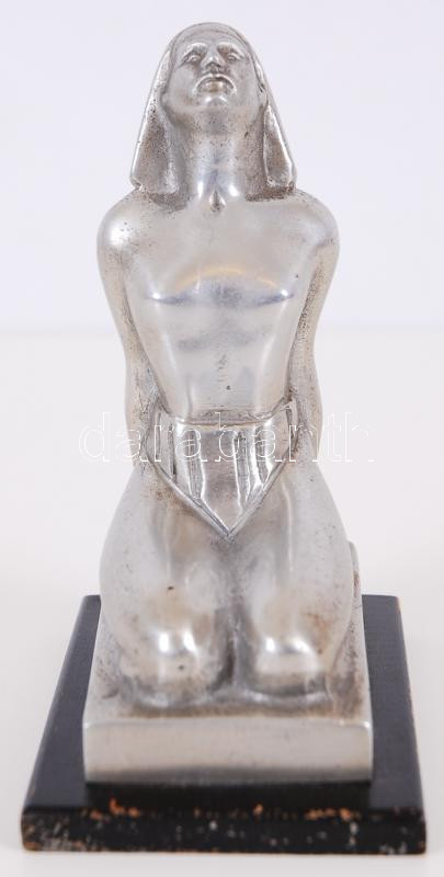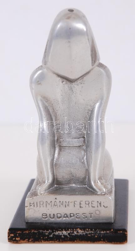 Beschreibung: cca 1900 Ábrándozás. Szecessziós, térdelő akt. Fém, fa talpon. Jelezett: Hirmann Ferenc, Budapest. 14 cm