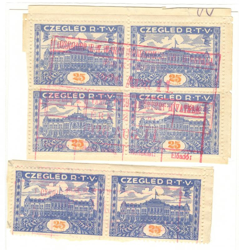 1925 Cegléd városi illetékbélyeg 2 kivágáson, négyestömb és pár, köztü... https://www.darabanth.com/de/175-Fernauktion/175.0/Andere-Sammelgebiete/Stempelmarken~1000017/1925-Cegled-varosi-illetekbelyeg-2-kivagason-negyestomb-es-par-koztuk-lemezhibas-14-~II606544