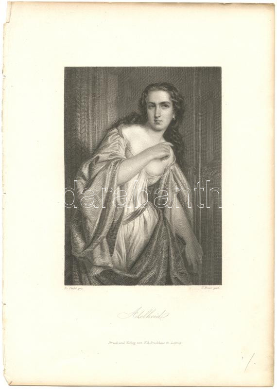 1864 Adelheid, acélmetszet. Forrás: Friedrich Pecht: Goethe-Galerie. Charaktere aus Goethes Werken. Gezeichnet von Friedrich Pecht und Arthur von Ramberg, Fünfzig Blätter in Stahlstich mit erläuterndem Texte von Friedrich Pecht. Leipzig, 1864, F. A. Brockhaus. 28x20cm