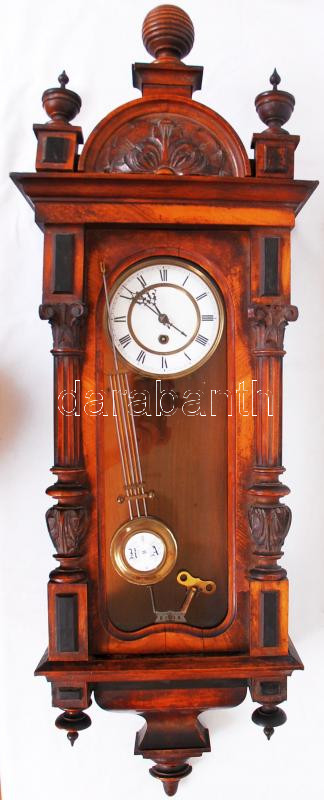 Egysúlyos antik falióra üzemképes, eredeti kulccsal, apró hibákkal, 11... https://www.darabanth.com/de/175-Fernauktion/175.0/Andere-Sammelgebiete/Uhren~1000013/Egysulyos-antik-faliora-uzemkepes-eredeti-kulccsal-apro-hibakkal-110C39733-cm-Antique-wall-~II607410