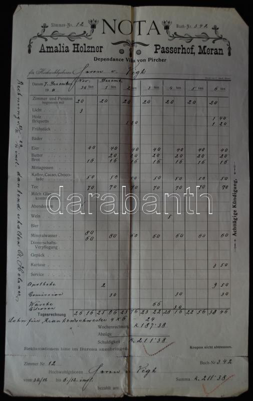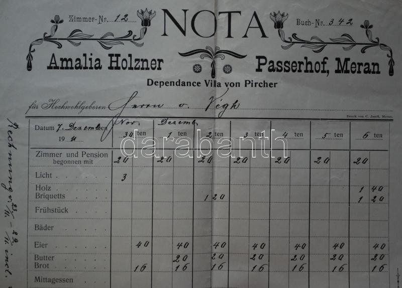 1911 Meran Passerhof hotel számla / invoice https://www.darabanth.com/de/175-Fernauktion/175.0/Andere-Sammelgebiete/Werbungen~1000021/1911-Meran-Passerhof-hotel-szamla-invoice~II572461