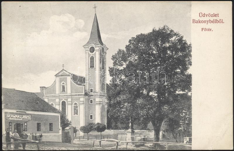 Bakonybél Főtér, Schwarz József üzlete (EB) https://www.darabanth.com/de/175-Fernauktion/175.0/Ansichtskarten/Ungarn~400237/Bakonybel-Foter-Schwarz-Jozsef-uzlete-EB~II605656