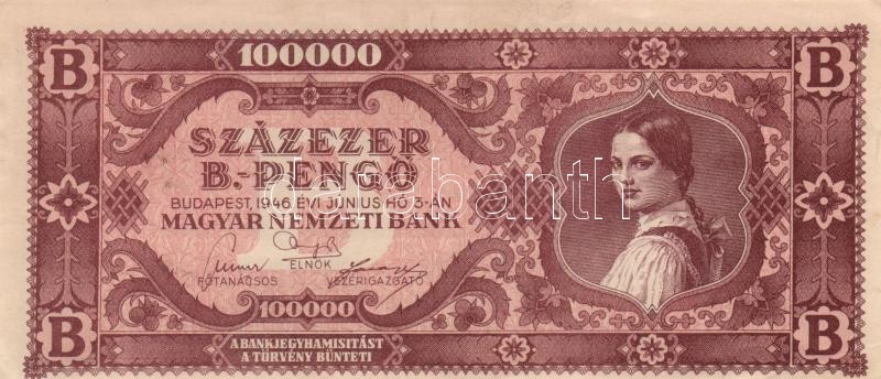 1946. 100.000BP (3x) színváltozatok T:II https://www.darabanth.com/de/175-Fernauktion/175.0/Numismatik/Ungarische-Banknoten~1200086/1946-100000BP-3x-szinvaltozatok-TII~II603243