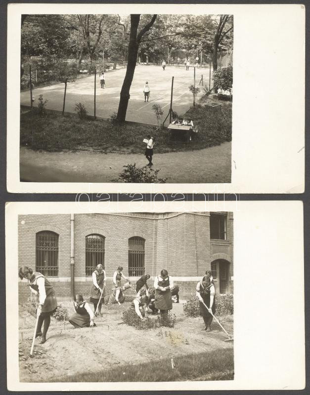 Beschreibung: 1933 2 db fotó, Budapest Erzsébet nőiskola, egyiken Stróbl Éva osztálya