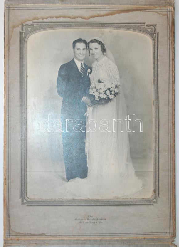 cca 1920 Nagyméretű keményhátú esküvői fotó az amerikai "The Mahan & Wright Studios McKees Rocks, PA" stúdióból, mappában /