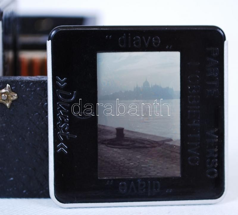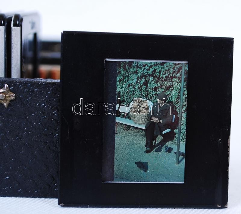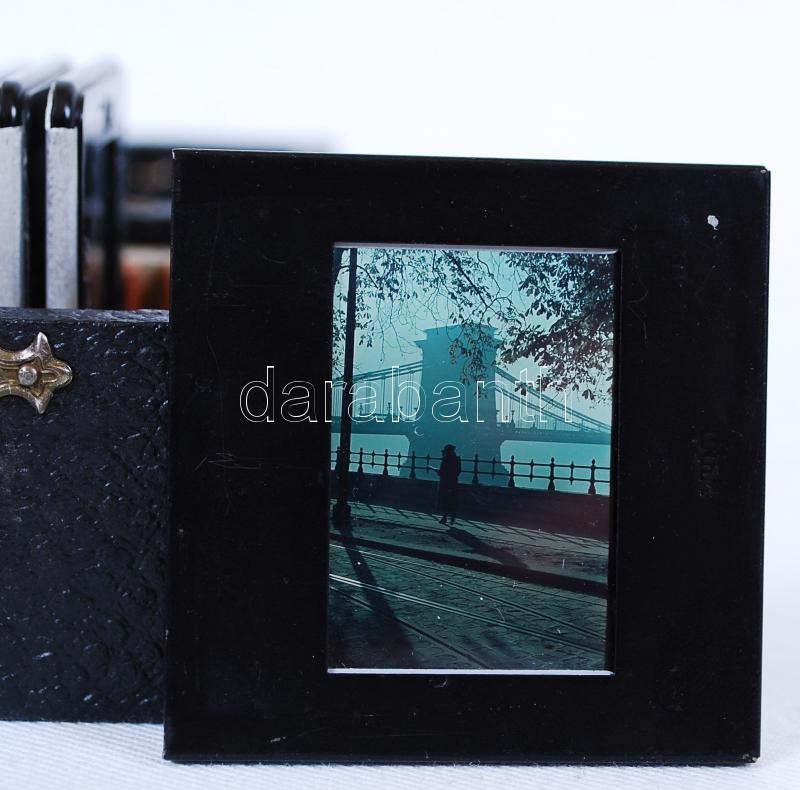 cca 1940 kb 50db diapozitív budapesti városképekkel (főleg a Budai Várról) korabeli tároló dobozban /