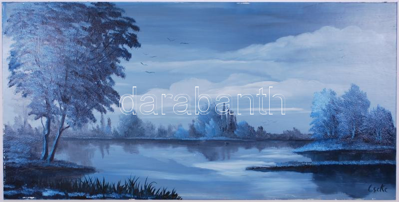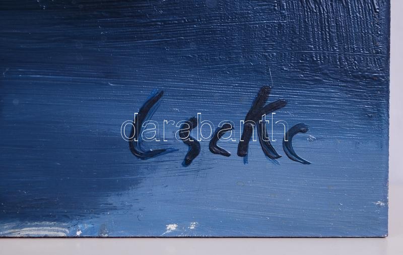 Beschreibung: Cseke Zoltán (1980-): Derengés. Olaj, farost, jelzett, 50×100 cm