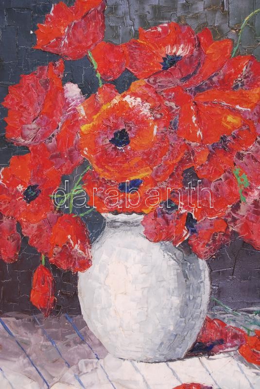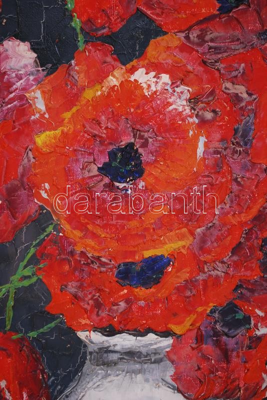 Olvashatatlan jelzéssel: Pipacsos csendélet. Olaj, vászon, 80x60cm https://www.darabanth.com/de/176-Fernauktion/176.0/Andere-Sammelgebiete/Gemalde-und-Grafiken~2000001/Olvashatatlan-jelzessel-Pipacsos-csendelet-Olaj-vaszon-80x60cm~II615094