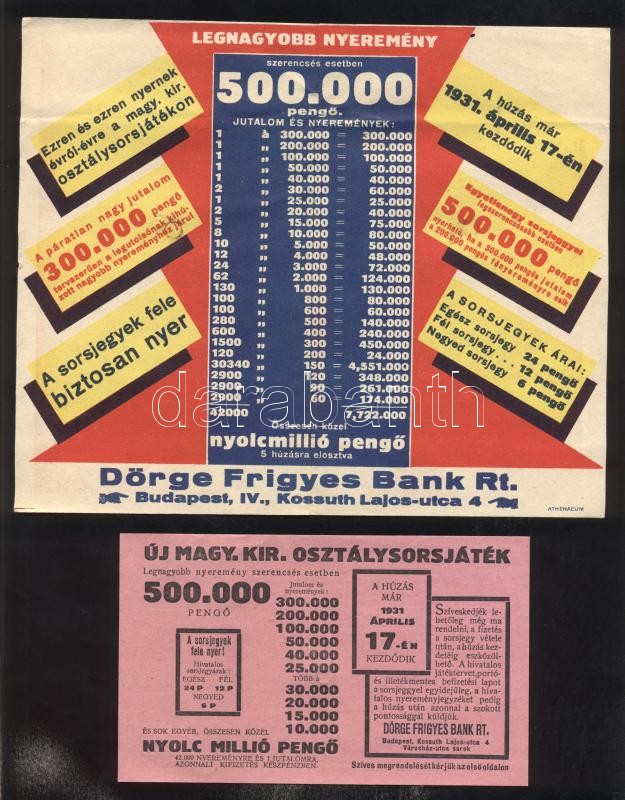 ~1939. Dörge Frigyes Bank "Új Magyar Királyi Osztálysorsjáték" rendel... https://www.darabanth.com/de/176-Fernauktion/176.0/Numismatik/Numismatische-Dokumente-und-Briefe~8000109/7E1939-Dorge-Frigyes-Bank-Uj-Magyar-Kiralyi-Osztalysorsjatek-rendelo-lap-es-reklamkiadvC3~II615851