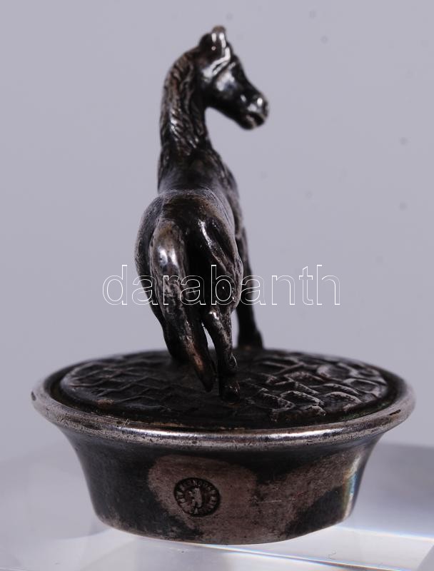 Beschreibung: cca 1930 Jelzett berndorfi ezüstözött alpakka bordugó lófigurával /