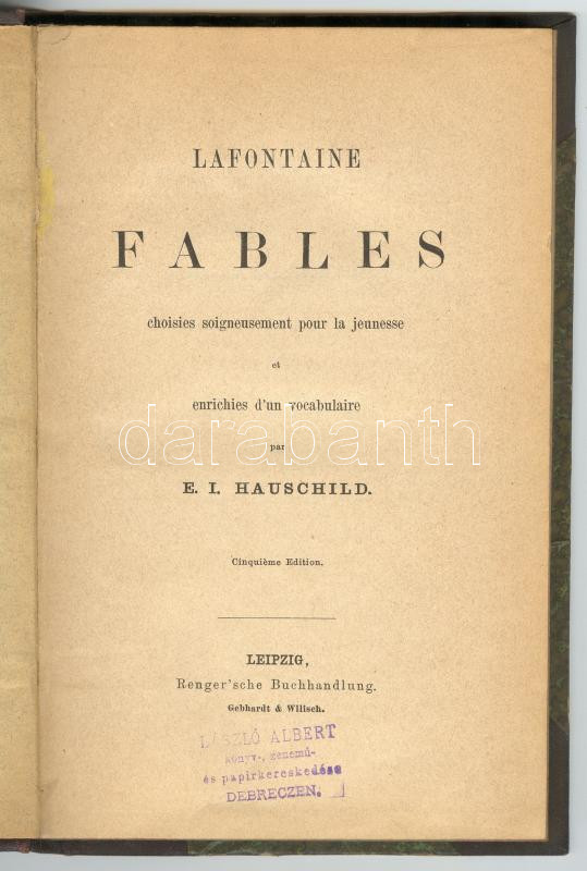 Lafontaine: Fables. Leipzig, o.J., Renger'sche Buchhandlung, Gebhardt & Wilisch. Kiadói félvászon kötésben, ex librisszel, jó állapotban /