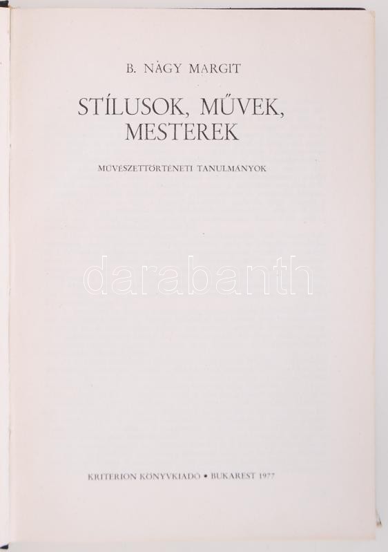 B. Nagy Margit: Stílusok, művek, mesterek. Bukarest, 1977, Kriterion. ... https://www.darabanth.com/de/177-Fernauktion/177.0/Andere-Sammelgebiete/Bucher-Architektur-Kunst~200028/B-Nagy-Margit-Stilusok-muvek-mesterek-Bukarest-1977-Kriterion-Kiadoi-egeszvaszon-kote~II609237