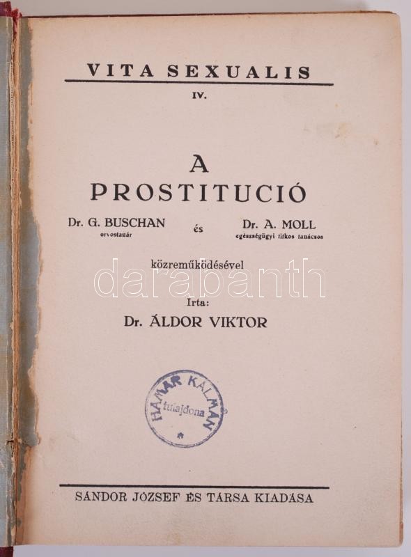 Dr. Áldor Viktor: A Prostitúció. Bp., Sándor József és tsa. Előzéklap ... https://www.darabanth.com/de/177-Fernauktion/177.0/Andere-Sammelgebiete/Bucher-Erotik~200030/Dr-Aldor-Viktor-A-Prostitucio-Bp-Sandor-Jozsef-es-tsa-Elozeklap-nelkul-230p~II590835
