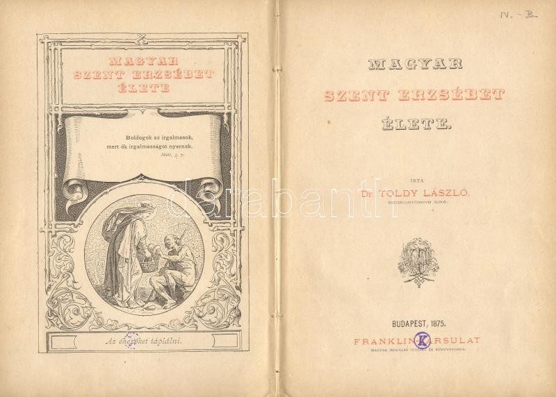 Dr. Toldy László: Magyar Szent Erzsébet élete. Bp., 1875, Franklin-Társulat. Kiadói, festett, félvászon kötésben, metszetekkel illusztrált, jó állapotú (a gerinc sérült)