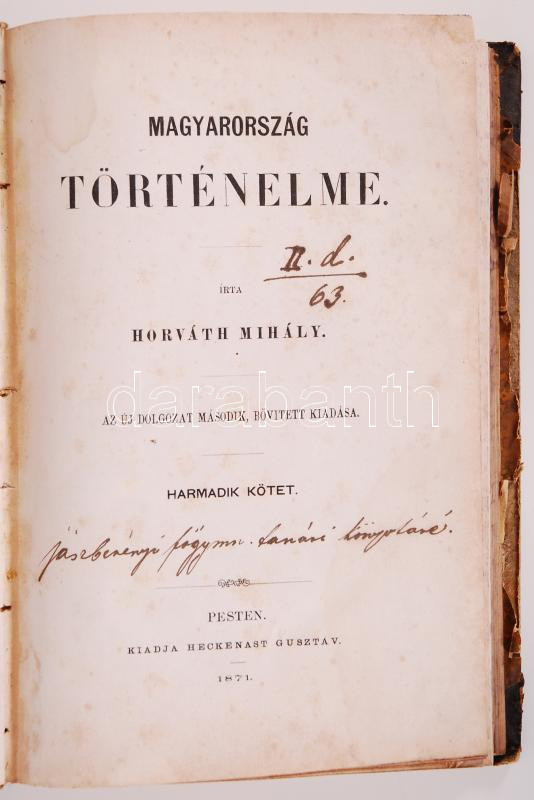 Horváth Mihály Magyarország történelme. 2. bov. kiad. 3. köt. Pest, 18... https://www.darabanth.com/de/177-Fernauktion/177.0/Andere-Sammelgebiete/Bucher-Geschichte~200036/Horvath-Mihaly-Magyarorszag-tortenelme-2-bov-kiad-3-kot-Pest-1871-Heckenast-Franklin-~II621433