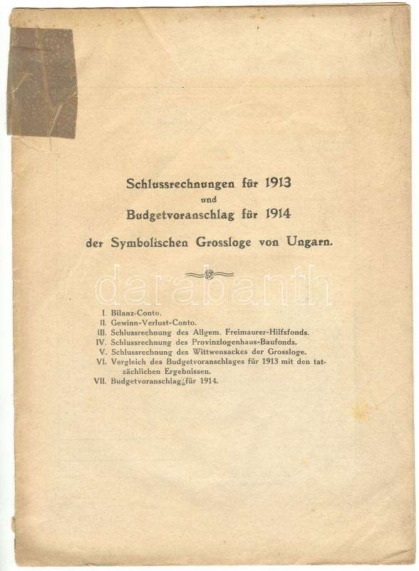 Schlussrechnungen für 1913 und Budgetvoranschlag für 1914 der Symbolis... https://www.darabanth.com/de/177-Fernauktion/177.0/Andere-Sammelgebiete/Bucher-Geschichte~200036/Schlussrechnungen-fur-1913-und-Budgetvoranschlag-fur-1914-der-Symbolischen-Grossloge-von-Ungarn-1~II589569