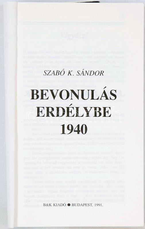 Szabó K. Sándor: Bevonulás Erdélybe. Budapest 1991. B&K Kiadó. https://www.darabanth.com/de/177-Fernauktion/177.0/Andere-Sammelgebiete/Bucher-Geschichte~200036/Szabo-K-Sandor-Bevonulas-Erdelybe-Budapest-1991-BK-Kiado~II603381