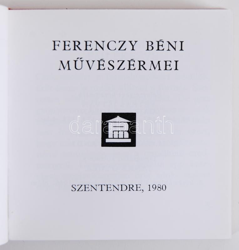 Minikönyv: Ferenczy Béni művészérmei. Szentendre, 1980. Műbőr kötésben https://www.darabanth.com/de/177-Fernauktion/177.0/Andere-Sammelgebiete/Bucher-Minibucher~200041/Minikonyv-Ferenczy-Beni-muveszermei-Szentendre-1980-Mubor-kotesben~II622995