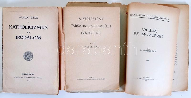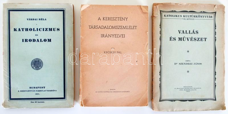 Beschreibung: 3 db keresztény kultúrával foglalkozó könyv: A keresztény társadalomszemlélet irányelvei. Várdai: A katholicizmus és irodalom, Szendrei: Vallás ás művészet
