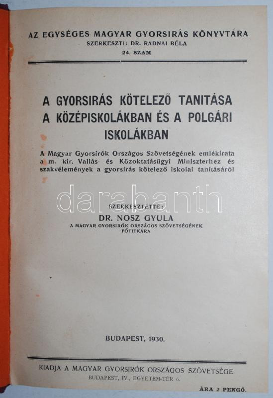 Az Egységes Magyar Gyorsírás Könyvtára. Szerk. Radnai Béla. 1930/24-25... https://www.darabanth.com/de/177-Fernauktion/177.0/Andere-Sammelgebiete/Bucher-Sonstige-Raritaten~200042/Az-Egyseges-Magyar-Gyorsiras-Konyvtara-Szerk-Radnai-Bela-193024-25-28-31-sz-Egybekotv~II581418