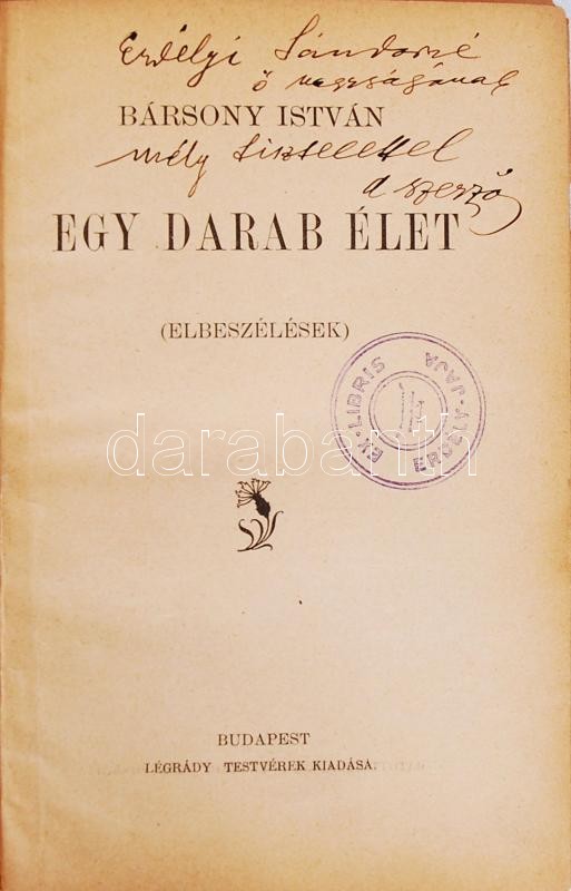 Bársony István: Egy darab élet. Budapest É.N. Légrády Testvérek Kiadás... https://www.darabanth.com/de/177-Fernauktion/177.0/Andere-Sammelgebiete/Bucher-Sonstige-Raritaten~200042/Barsony-Istvan-Egy-darab-elet-Budapest-EN-Legrady-Testverek-Kiadasa-Dedikalt~II621089