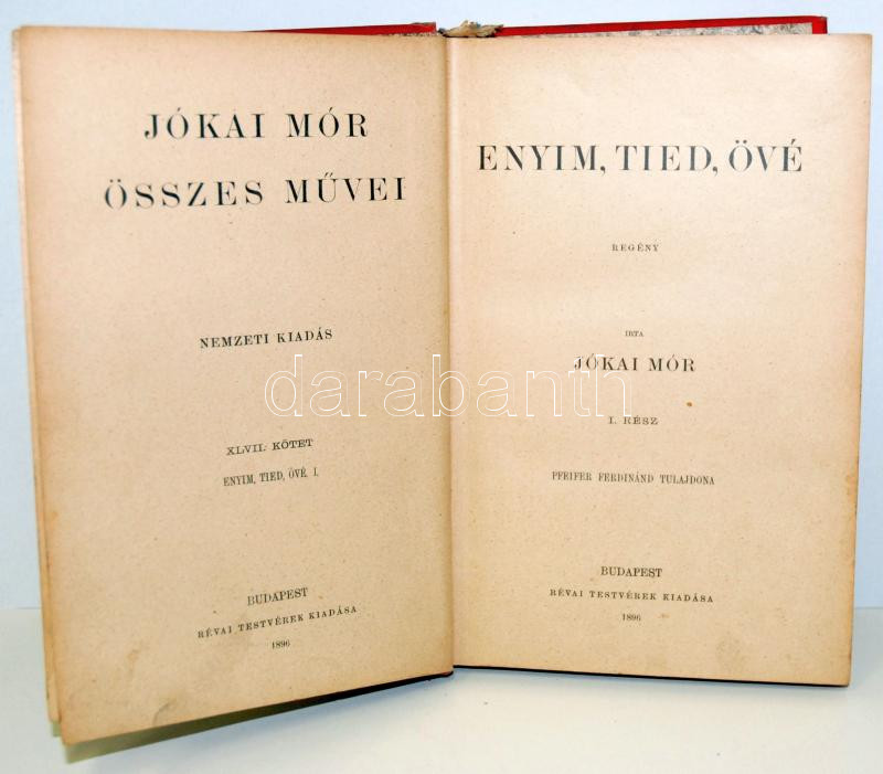 Jókai Mór: Az Enyém, Tied,Övé I-II. Budapest 1896. Révai Testvérek Kia... https://www.darabanth.com/de/177-Fernauktion/177.0/Andere-Sammelgebiete/Bucher-Sonstige-Raritaten~200042/Jokai-Mor-Az-Enyem-Tied-Ove-I-II-Budapest-1896-Revai-Testverek-Kiadasa~II621440