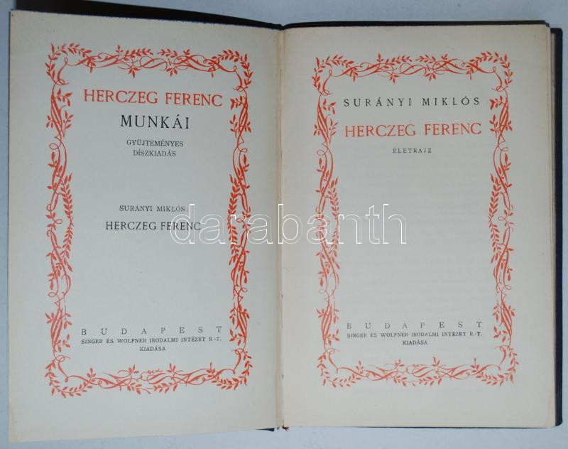 Surányi Miklós: Herczeg Ferenc. (Herczeg Ferenc Munkái Gyűjteményes Dí... https://www.darabanth.com/de/177-Fernauktion/177.0/Andere-Sammelgebiete/Bucher-Sonstige-Raritaten~200042/Suranyi-Miklos-Herczeg-Ferenc-Herczeg-Ferenc-Munkai-Gyujtemenyes-Diszkiadas-Bp-1925-Si~II581383