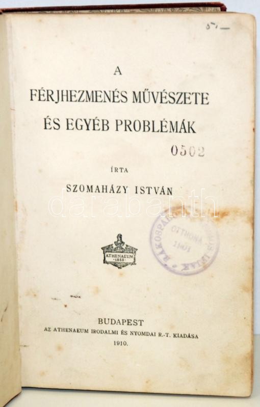 Szomaházy István: A férjhezmenés művészete és egyéb problémák. Bp., 19... https://www.darabanth.com/de/177-Fernauktion/177.0/Andere-Sammelgebiete/Bucher-Sonstige-Raritaten~200042/Szomahazy-Istvan-A-ferjhezmenes-muveszete-es-egyeb-problemak-Bp-1910-Athenaeum-Kisse~II620147