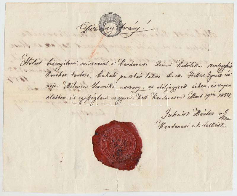 1854 Bizonyítvány 45kr szignettával https://www.darabanth.com/de/177-Fernauktion/177.0/Andere-Sammelgebiete/Dokument~200014/1854-Bizonyitvany-45kr-szignettaval~II621128