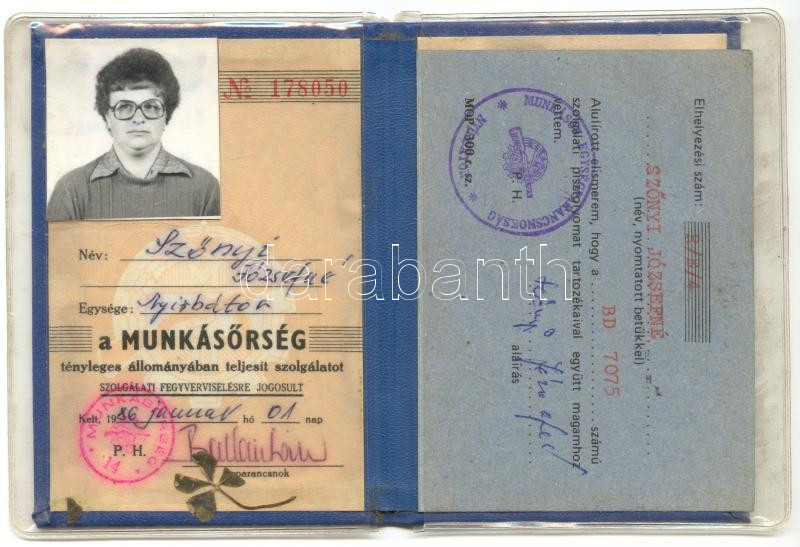 Fényképes női munkásőr igazolvány, és egy minikönyv a Munkásőrség fenn... https://www.darabanth.com/de/177-Fernauktion/177.0/Andere-Sammelgebiete/Dokument~200014/Fenykepes-noi-munkasor-igazolvany-es-egy-minikonyv-a-Munkasorseg-fennallasanak-25-e~II623180
