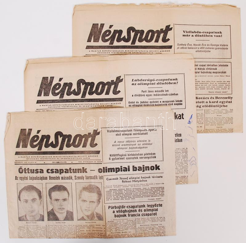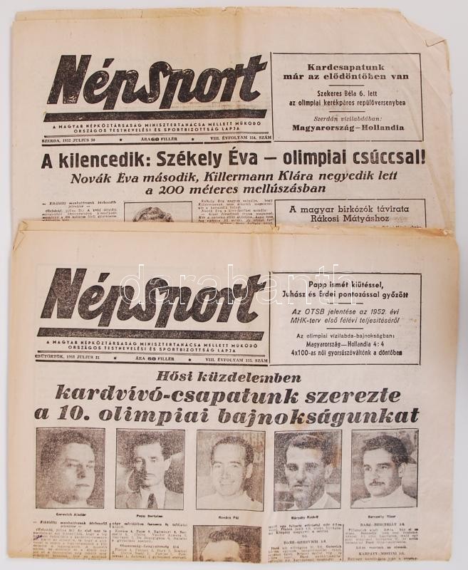 1952 5db Népsport-szám a Helsinkiben megrendezett nyári olimpiáról https://www.darabanth.com/de/177-Fernauktion/177.0/Andere-Sammelgebiete/Drucksachen~200025/1952-5db-Nepsport-szam-a-Helsinkiben-megrendezett-nyari-olimpiarol~II608176