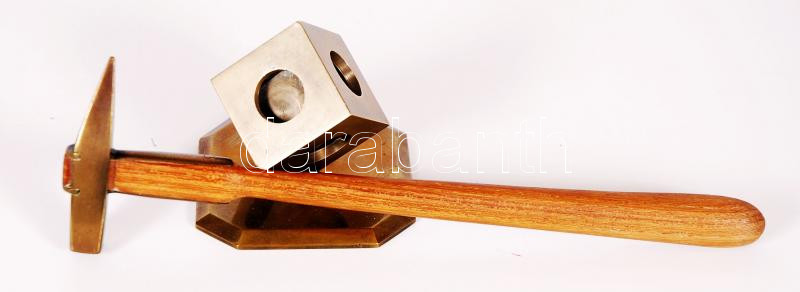 Beschreibung: 2db bányász emléktárgy: bronz szobor és egy kis kalapács, 7x7x7cm, 22cm