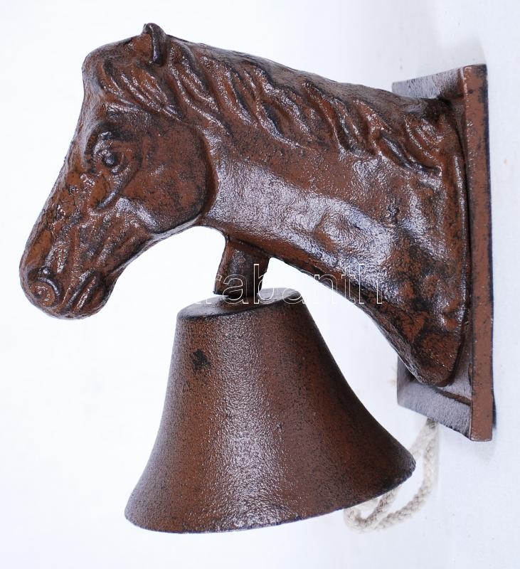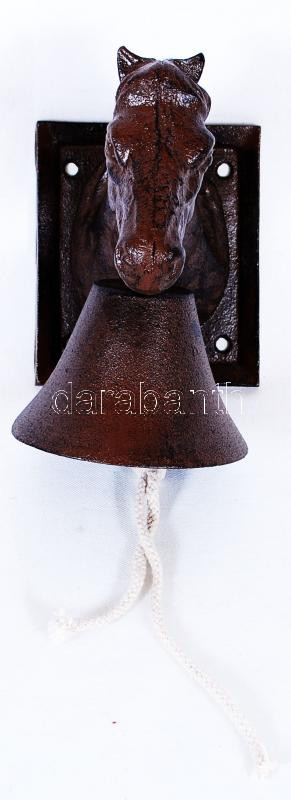 Beschreibung: Falra szerelhető lófej harangcsengővel, fém, 17×20×12 cm