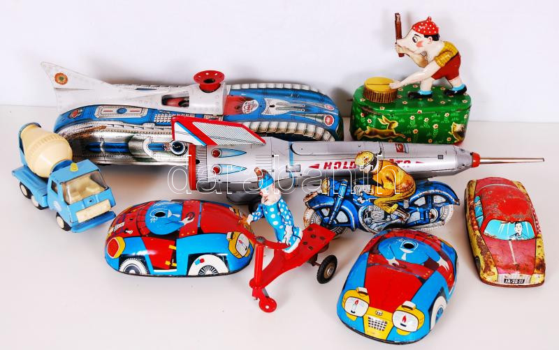 Beschreibung: Lemezárugyár játék tétel összesen 8 db játék, több helyen rozsda nyomok