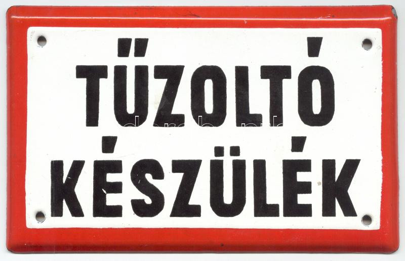 "Tűzoltó készülék" feliratú régi zománcozott fém tábla, 10x16cm https://www.darabanth.com/de/177-Fernauktion/177.0/Andere-Sammelgebiete/Flohmarkt~200011/Tuzolto-keszulek-feliratu-regi-zomancozott-fem-tabla-10x16cm~II623119
