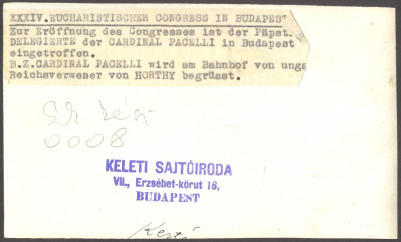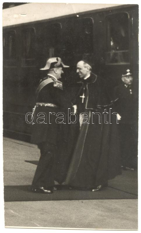 1938 Eucharisztikus Kongresszus, Budapest; Horthy Miklós kormányzó a Keleti Pályaudvar peronján köszönti Pacelli bíboros pápai legátust. A Keleti Sajtóiroda felvétele.