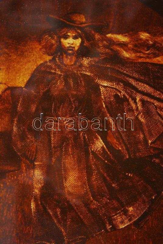 Beschreibung: Herczeg István: Bucsu. Olaj, karton, jelzett, üvegezett keretben 40×36 cm