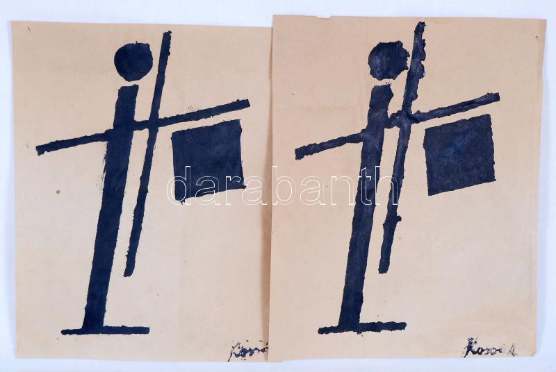 Beschreibung: Kassák jelzéssel: Képarchitektúra 2 db. Tus, papír, apró szakadások, 28×22 cm