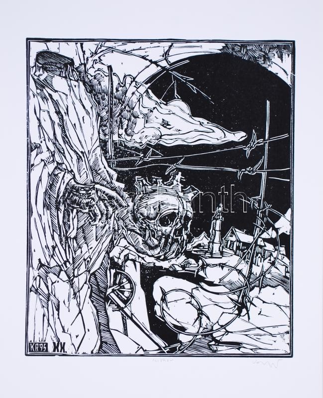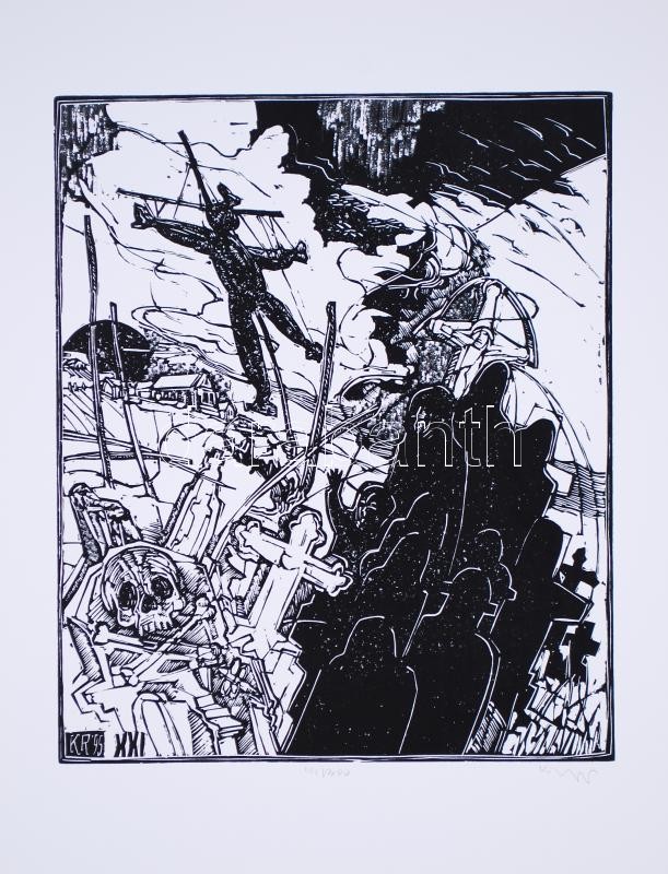 Kőnig Róbert (1951- ): Dort drunt an der Donau. Graphiken von Robert König zur Geschichte der Ungarndeutschen. Számozott 101/300, mindegyik szignált ,linómetszet, papír, összesen: 22 db