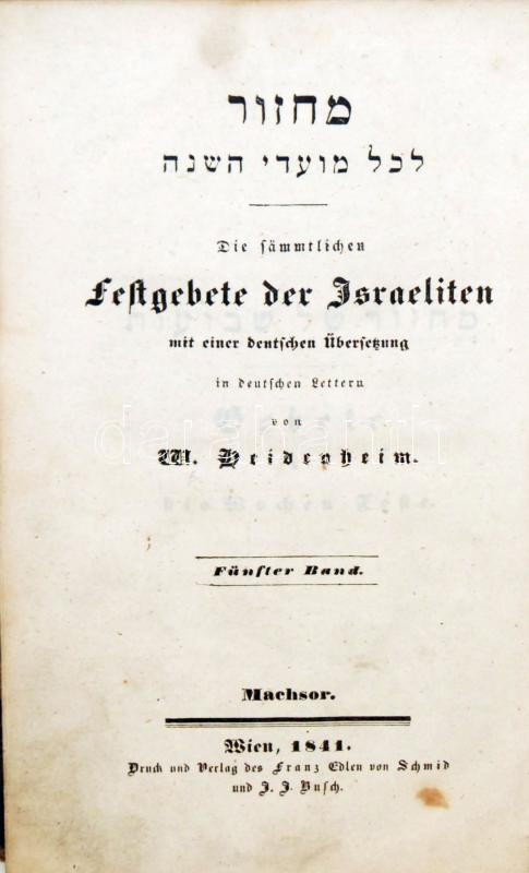 W. Veidenheim: die Sammtlichen Festgebete der Israeliten mit einer deutschen Übersetzung. Machsor. Wien 1841. kissé sérült egészbőr kötésben / slightly damaged full leather binding
