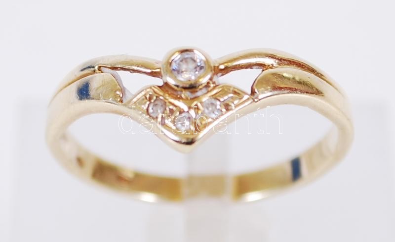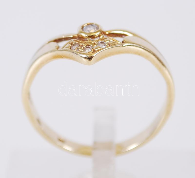 Beschreibung: 14K Arany (Au.) gyűrű, jelzett, cinkónkövekkel bruttó: 2,7 g, mérete: 56