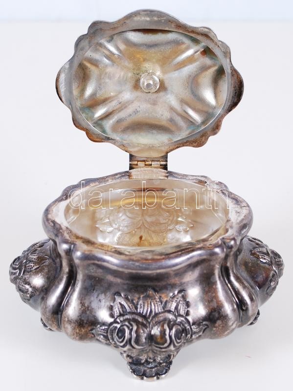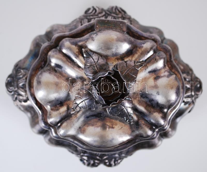 Beschreibung: 1937-1967 Rózsákkal díszített ezüst (Ag) cukortartó 800-as "dianás" jelzéssel és KA mesterjeggyel ellátva /