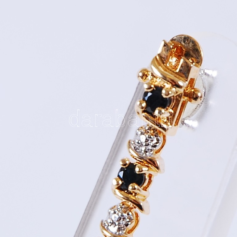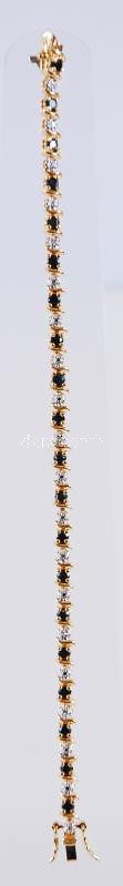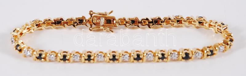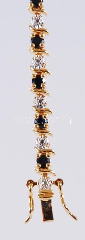 Beschreibung: Tűzaranyozott ezüst (Ag.) karkötő szintetikus kövekkel, tokban, h:19 cm, bruttó: 13,3 g