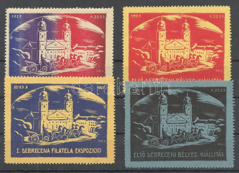 Beschreibung: 1927 I. Debreceni Bélyegkiállítás 4 klf levélzáró