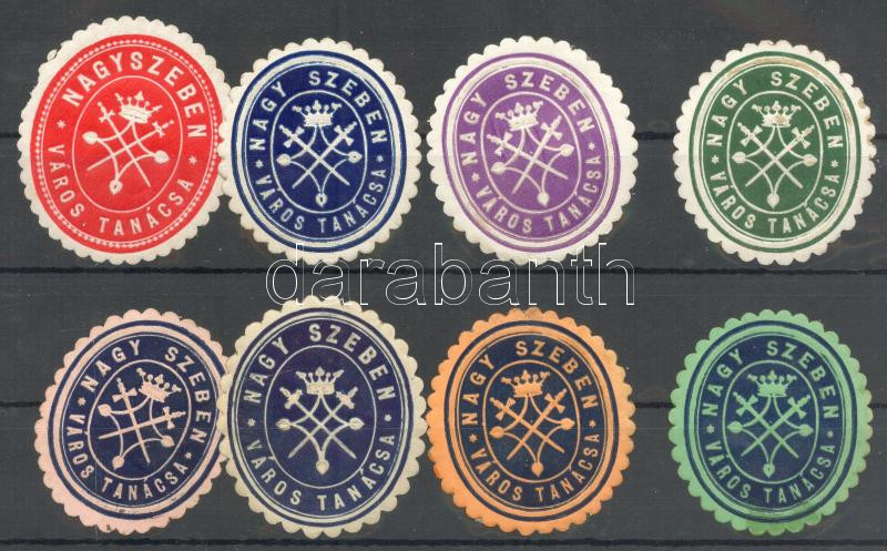 Beschreibung: 8 db Nagyszeben Város Tanácsa pecsétbélyeg