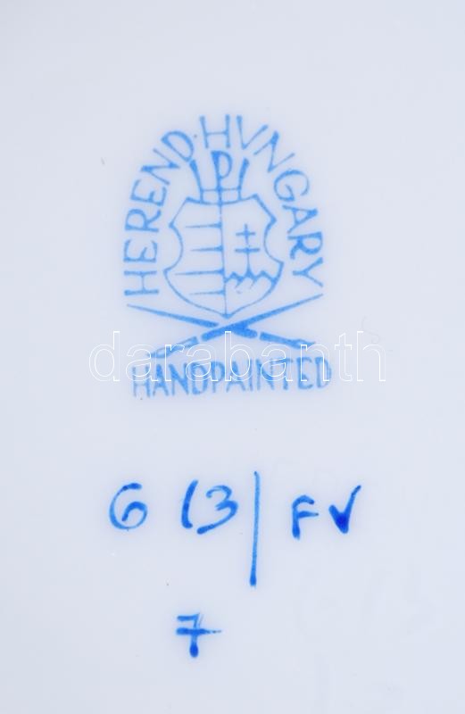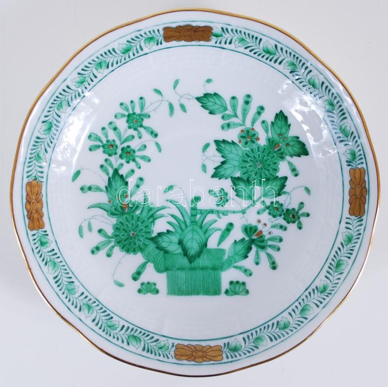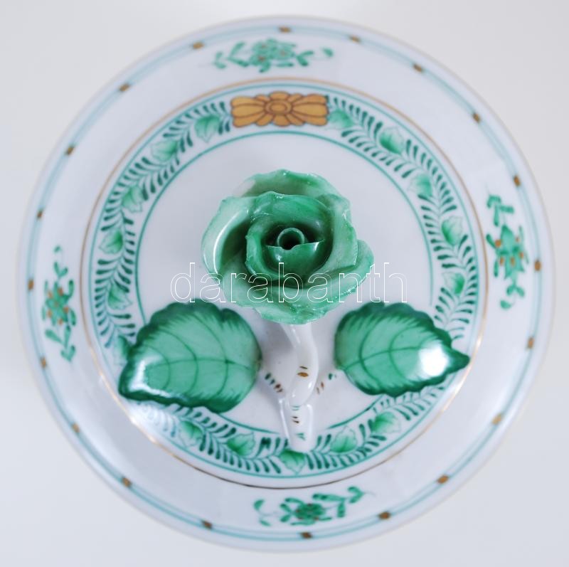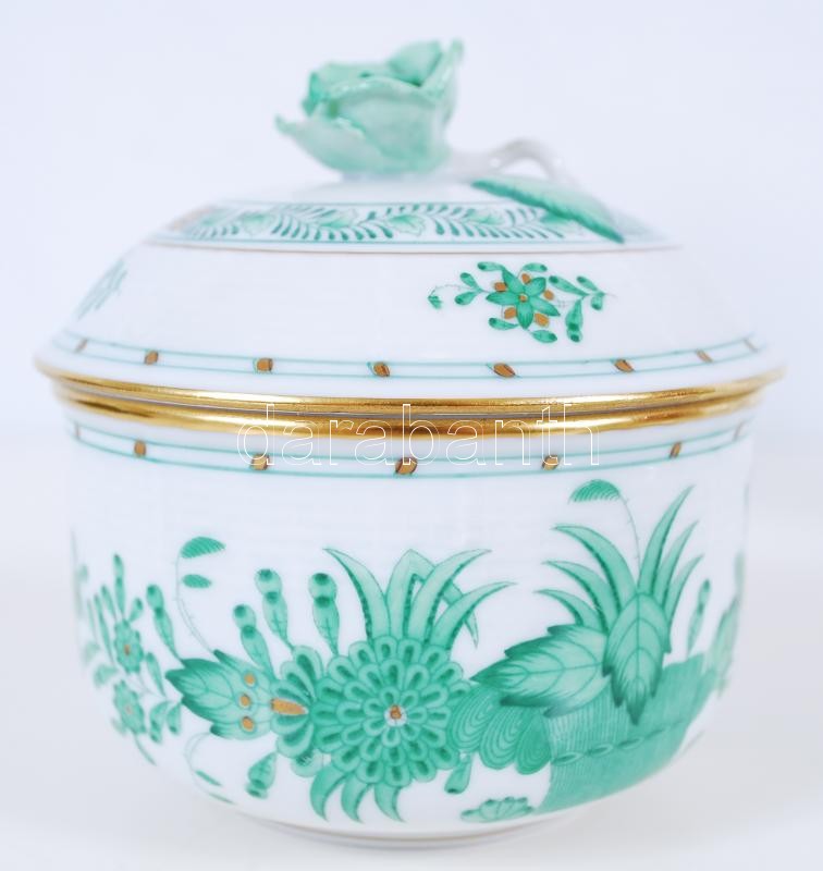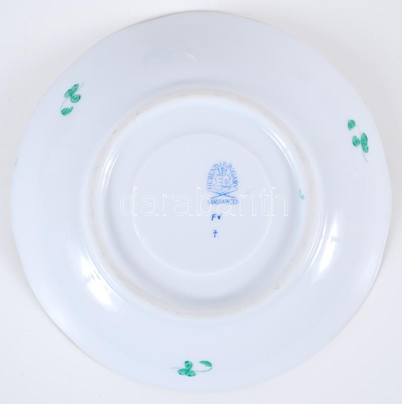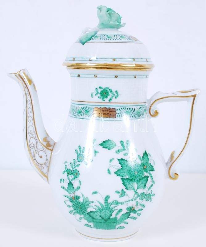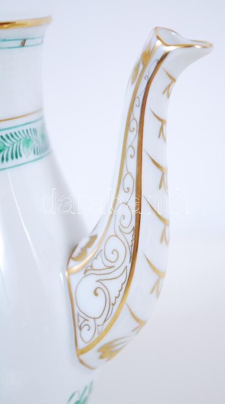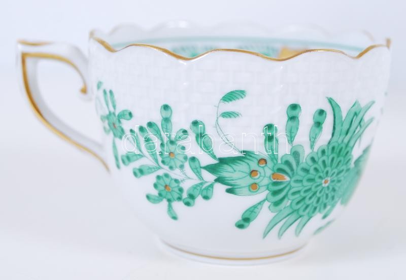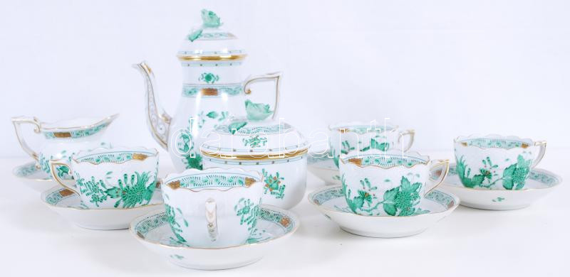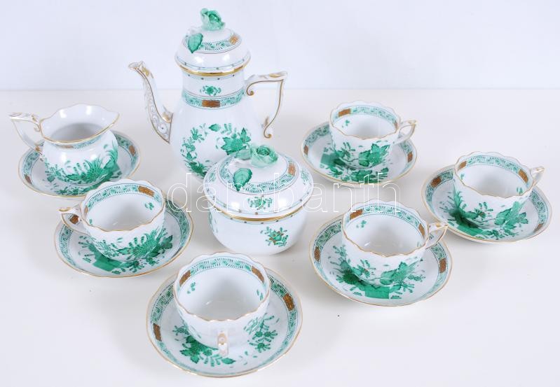 5 személyes kézzel festett és aranyozott, sorszámozott, Fleurs de Indes vertes-mintás, jelzett Herendi porcelán kávéskészlet rózsán apró lepattanás állapotban /