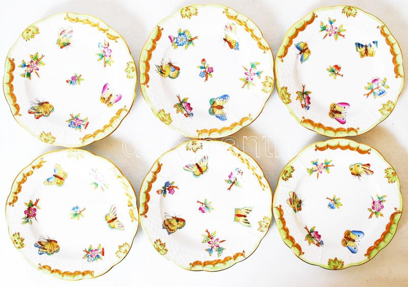 Beschreibung: 6 db Herendi teás csészealj, kézzel festett, jelzett, hibátlan, d: 12 cm