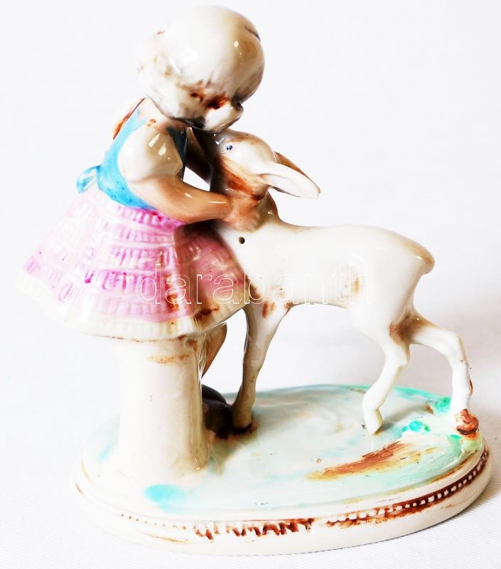 Beschreibung: Gräfenthal német, kislány és gidája. Jelzett 1875-1879, javított a lábánál, kézzel festett, m:14 cm, h:10 cm