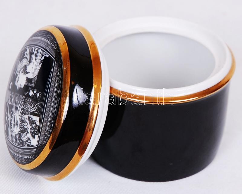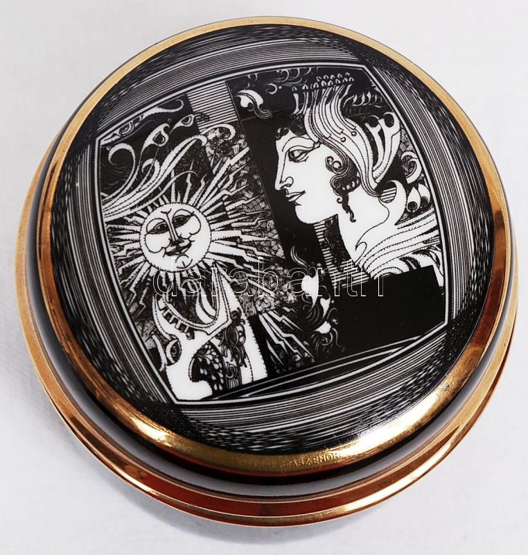 Szász Endre által tervezett Hollóházi jelzett porcelán kör alakú doboz...