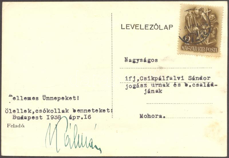 1938 Murgács Kálmán (1893-1966) költő által aláírt levelezőlap, képes ... https://www.darabanth.com/de/177-Fernauktion/177.0/Andere-Sammelgebiete/Signatur~200016/1938-Murgacs-Kalman-1893-1966-kolto-altal-alairt-levelezolap-kepes-oldalan-a-szerzo-m~II623229